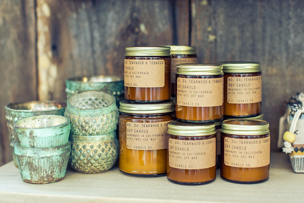 Made in Los Angeles, Ca. from U.S. grown soy wax, cotton wicks, and fine fragrances - P.F. Candles are small batch and hand poured.